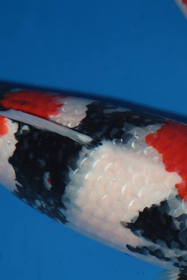 Ниже вы можете увидеть несколько разных ракурсов фотографии рыбы-рекордсмена. Обратите внимание на качество кожи: кажется, что каждая чешуйка как бы наполнена перламутром изнутри. Рыба просто идеальная и мы уверены, что на ферме Нариты кои получит максимум ухода и внимания.